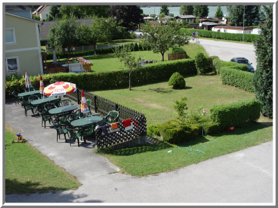 Vor dem Lokal im Gastgarten können die Besucher der Sonne huldigen, oder an den beschatteten Plätzen verweilen und Rast machen. So manche illustere Gesellschaft hat sich schon eingefunden wie, Reiter, Pferdekutschen, Planen Wagen, Hunde Gespanne, fahrendes Klavier, Motorradgruppen, Oldtimer Fahrzeuge aller Art, sowie Wanderer auf dem Pilgerweg nach Jerusalem oder dem Jakobs Weg nach Santiago de Compostela.